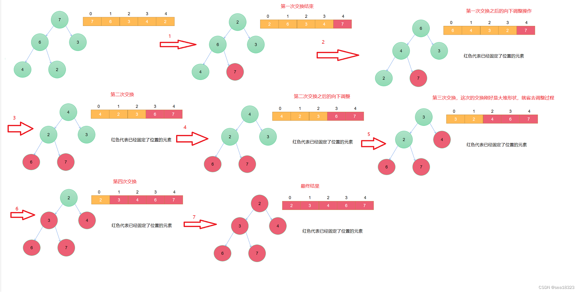 堆排序(Heapsort)是指利用堆这种数据结构所设计的一种排序算法。堆积是一个近似完全二叉树的结构,并同时满足堆积的性质:即子结点的键值或索引总是小于(或者大于)它的父节点。堆排序可以说是一种利用堆的概念来排序的选择排序。分为两种方法: 大顶堆:每个节点的值都大于或等于其子节点的值,在堆排序算法中用于升序排列; 小顶堆:每个节点的值都小于或等于其子节点的值,在堆排序算法中用于降序排列;