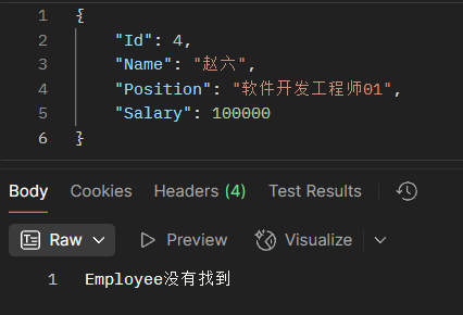 5、ASP.NET应用(Http PUT) 1 2 3 4 5 6 7 8 9 10 11 12 13 14 15 16 17 18 19 20 21 22 23 24 25 26 27 28 29 30 31 32 33 34 35 36 37 38 39 40 41 42 43 44 45 46 47 48 49 50 51 52 53 54 55 56 57 58 59 60 61 62 63 64 65 66 67 68 69 70 71 72 73 74 75 76 77 78 79 80 81 82 83 84 85 86 87 88 89 90 91 92 93 94 95 96 97 98 99 100 101 102 103 104 105 106 107 108 109 110 111 112 113 114 115 116 117 118 119 120 using System.Text.Json;var builder = WebApplication.CreateBuilder(args );var app = builder.Build();app.Run(async (HttpContext context) => { context.Response.ContentType = "text/plain; charset=utf-8" ; if (context.Request.Method == "GET" ) { if (context.Request.Path.StartsWithSegments("/" )) { await context.Response.WriteAsync($"该请求的方法是{context.Request.Method} \r\n" ); await context.Response.WriteAsync($"该请求的路径是{context.Request.Path} \r\n" ); await context.Response.WriteAsync($"\r\n该请求的请求头有\r\n" ); foreach (var key in context.Request.Headers.Keys) { await context.Response.WriteAsync($"{key} :{context.Request.Headers[key]} \r\n" ); } await context.Response.WriteAsync($"该请求的请求体是{context.Request.Body} \r\n" ); } else if (context.Request.Path.StartsWithSegments("/employees" )) { var employees = EmployeesRepository.GetEmployees(); foreach (var employee in employees) { await context.Response.WriteAsync($"{employee.Name} : {employee.Position} \r\n" ); } } } else if (context.Request.Method == "POST" ) { if (context.Request.Path.StartsWithSegments("/employees" )) { using var reader = new StreamReader(context.Request.Body); var body = await reader.ReadToEndAsync(); var employee = JsonSerializer.Deserialize<Employee>(body); EmployeesRepository.AddEmployees(employee); } } else if (context.Request.Method == "PUT" ) { if (context.Request.Path.StartsWithSegments("/employees" )) { using var reader = new StreamReader(context.Request.Body); var body = await reader.ReadToEndAsync(); var employee = JsonSerializer.Deserialize<Employee>(body); var result = EmployeesRepository.UpdateEmployee(employee); if (result) { await context.Response.WriteAsync("Employee已经更新了" ); } else { await context.Response.WriteAsync("Employee没有找到" ); } } } }); app.Run(); static class EmployeesRepository { private static List<Employee> employees = new List<Employee> { new Employee(1 , "张三" , "工程师" , 60000 ), new Employee(2 , "李四" , "经理" , 75000 ), new Employee(3 , "王五" , "技术员" , 50000 ) }; public static List<Employee> GetEmployees () => employees; public static void AddEmployees (Employee? employee ) { if (employee is not null ) { employees.Add(employee); } } public static bool UpdateEmployee (Employee? employee ) { if (employee is not null ) { var emp = employees.FirstOrDefault(x => x.Id == employee.Id); if (emp is not null ) { emp.Name = employee.Name; emp.Position = employee.Position; emp.Salary = employee.Salary; return true ; } } return false ; } } public class Employee { public int Id { get ; set ; } public string Name { get ; set ; } public string Position { get ; set ; } public double Salary { get ; set ; } public Employee (int id, string name, string position, double salary ) { Id = id; Name = name; Position = position; Salary = salary; } }