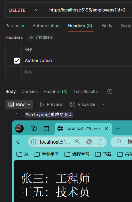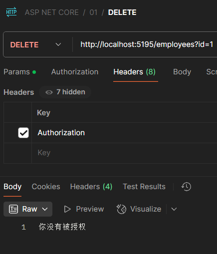 在DELETE添加授权验证为请求头中包含”Authorization=李“